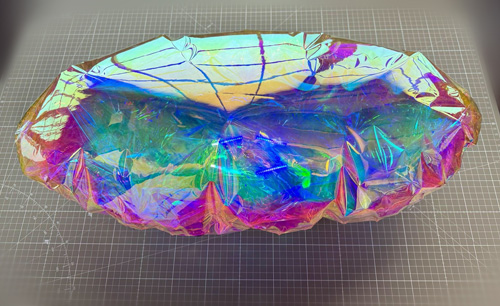 "INTER-WORLD/Cocooner: Apparent motion of celestial bodies_mobile" | ナノ積層フィルム、空気、光、ファン、LED照明、ステンレス台座 | 25x30x60cm | 2025年