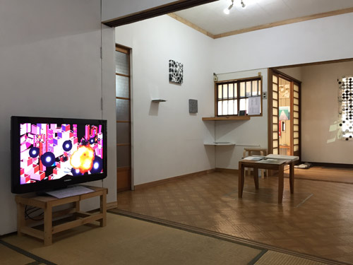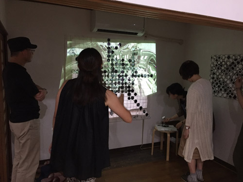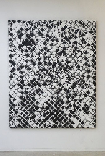 栗原は、ボードゲームのひとつである「オセロゲーム」のルールに則して、グリッドのマス目の中にスタンピングやドロッピングの手法で2つの色を交互に積み重ねていくことによって画面を構築していく作品シリーズ「Mind Games」に継続的に取り組んでいます。観客参加によるパフォーマンスや映像も取り入れながら、世界や社会の持つゲーム性やルール性、そしてそれらに対する問いかけが重層的に暗示されています。本展では、会場内でライブペインティングのパフォーマンスも行い、インスタレーションが会期を通じて刻々と変化し続けます。