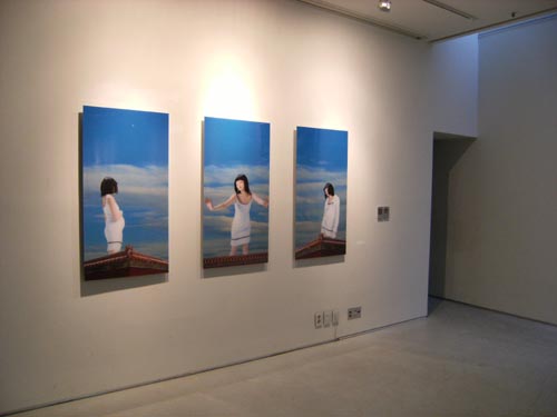 “Angel” of Cui Xiuwen (1970- ), which will be shown at this exhibition, is a series of photographic works which features a young girl, dressed in white and pregnant. This controversial artist from Haerbin tries to highlight the precarious position of women in a society where they are still regarded as “le deuxieme sexe” (the second sex). Despite her unmistakably feminist standing, her work offers more than the gender issues; beauty of the young girl, her swollen belly, her unhappy face indicating an unwanted pregnancy; all these alludes to, in a broader sense, the difficulty of life of all human beings on earth.