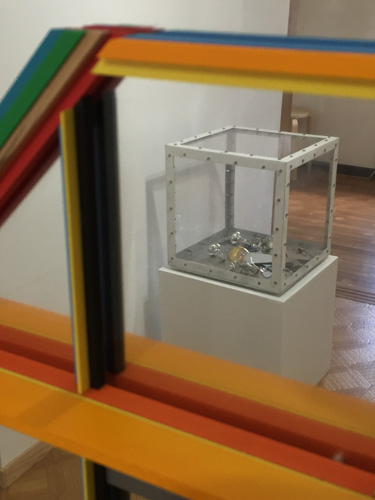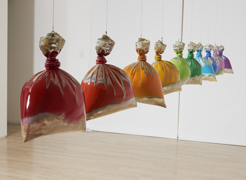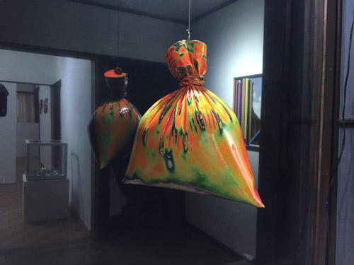 "Artactually - Anti-fly Waterbag" | レジン、ウレタン、ロープ、物干し綱 | 25x15x25cm | 2018年