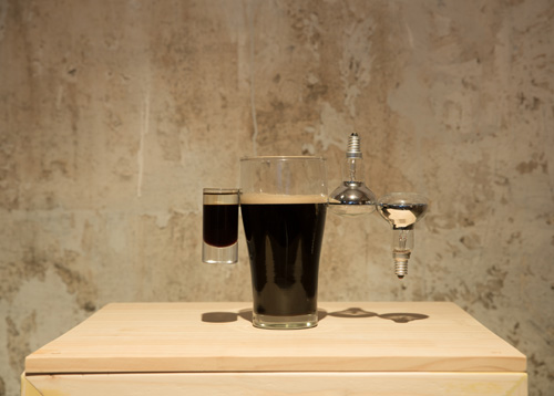 "There Is No Reason" | ギネス、バルサミコ酢、オリーブ油、電球、ガラス | 22x8x13cm | 2012年