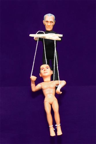 人は、混沌とした社会や私生活の中で「抑圧」と「解放」、「隠すこと」と「見えること」、「期待」と「絶望」など二極間を絶妙なバランスを取りながら漂っている一方で、ともすれば「極端」という流れに身を委ねることもあります。「極端」に「ドラマ」があり、そのドラマの中で、満足しない自分の役でさえ陶酔して演じる姿は悲しくも滑稽です。当たり前と捉えている日常の至るところに「極端への起爆剤」があり、昨今では人形と同じく何かに操られているような人間の脆さを感じながら制作をしています。 (伊賀美和子)