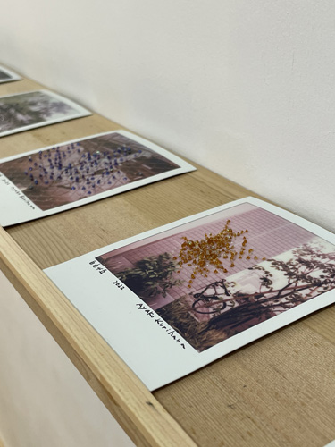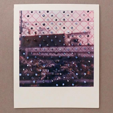 "グリッドの中の風景 本牧埠頭" | アクリル、ポラロイドフィルム | 8.8x10.8cm | 2023年
