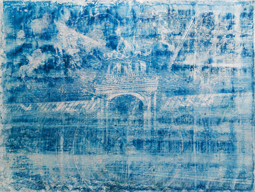 "de cometis 1698" | サイアノタイプ、アクリルジェルメディウム、銀箔/パネル | 36x48cm | 2022年
