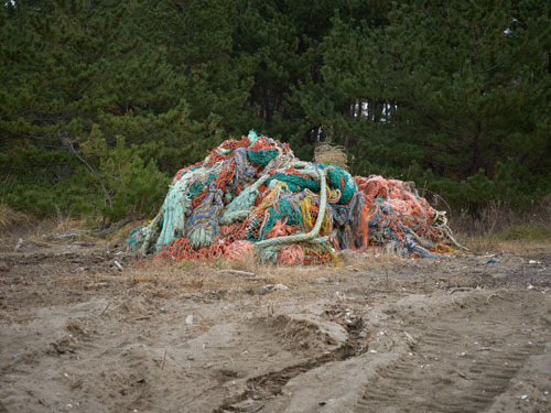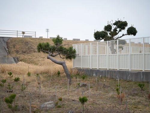 防砂林は「白砂青松」などとよばれ、日本人と自然との調和や共生を象徴する風景の一つとみなされています。しかし、その歴史はそれほど古いものではなく、多くは17世紀ごろから造られ始めました。明治維新・恐慌・太平洋戦争を節目に、いくつもの松林が姿を消していきました。戦後、再び植林が始まった防砂林は密度が高く、風景を遮断しています。津波によって多くの海岸林が失われた被災地では、整然とした構造物としての松原の再生が進んでいます。