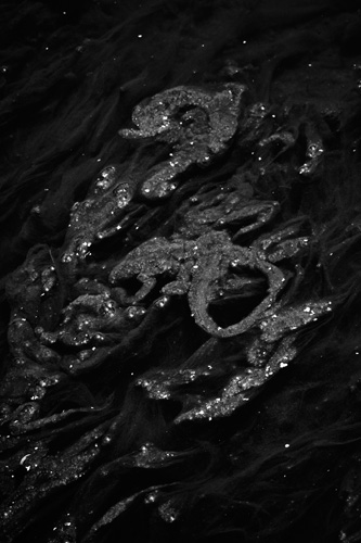 《ヘドラを探しに》は、南條が長年取り組んでいる、水面の太陽光を捉えた《suns》の派生形となるシリーズです。淀み濁った川の汚泥の形を、映画に登場する「公害怪獣」になぞらえながら、人間社会と自然環境の矛盾した関係性に静かな眼差しを向けます。