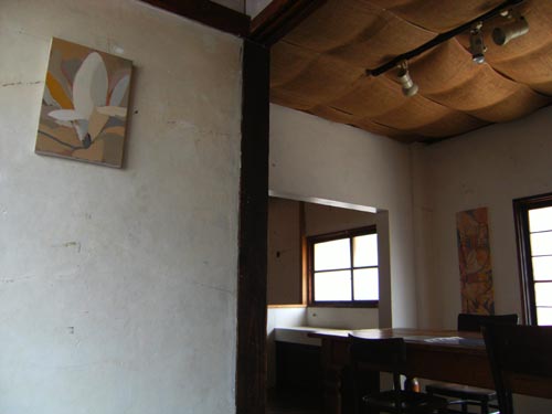 日本画、特に琳派などの装飾的な伝統絵画からの影響は、作家自身が「日本の伝統的な模様や襖絵等に関心を持ち、フラットでありつつも油絵の特徴を生かして面と線、写実を組み合わせた独自の空間表現を模索している」と語るとおりです。