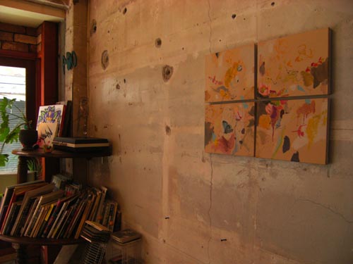 塗りつぶし、汚し、上描き……静かで抑制された色彩の中に時折現れ、画面を分断したり覆い隠したりするランダムな線や色面は、ノイズのように強い存在感を主張し、描くこと本来の衝動性を垣間見せています。「映像的」(あるいは「図解的」)な絵画が主流となっている最近の日本の現代アートの状況において、「絵画的」な絵画のみが与えることのできる視覚体験、見ることの純粋な喜びを、荻野の描く作品は備えていると言えるでしょう。