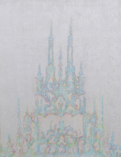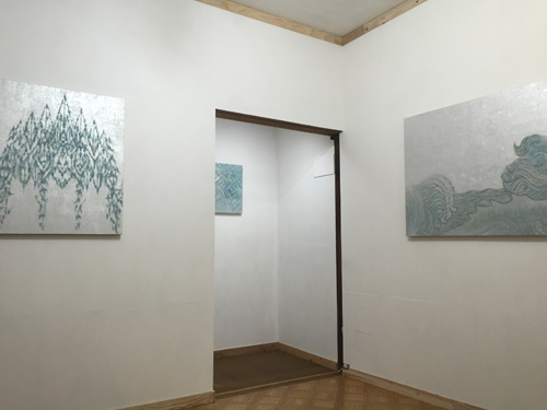 白河の絵画制作を貫く大きな特徴は金属の「箔」の使用であり、そこから導かれる「絵画における光の表現」にあります。絵画材料や技法に対する深い知見と探究に裏打ちされた緻密で繊細なその画面は、平面の上にイリュージョンを生み出すことを古代から連綿と追求してきた絵画の歴史に軸足を置きながら、現代における絵画の可能性を押し広げようとする格闘の痕跡でもあります。