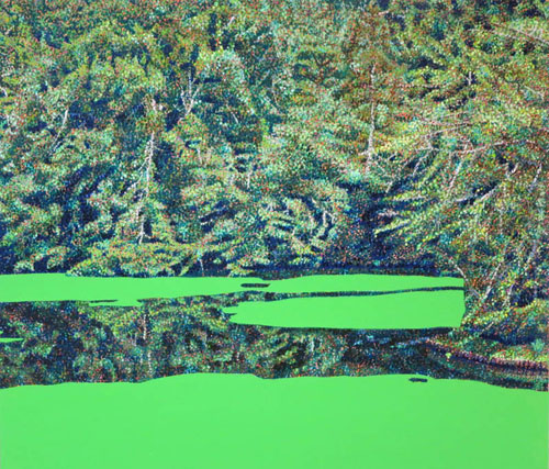 佐野直は無数の点で既視感のある自然や光景を描き出す。上野洋嗣はジオラマから「超越的な風景」を生成する。田中加織は日本庭園から着想されたアイスクリームのようにカラフルな山々を聳えさせる。原口勉は対馬の山中に建つ「禁忌な遺跡」から物語を紡ぐ。天野百恵は生活のタイムラインから多様な表現を派生させる。