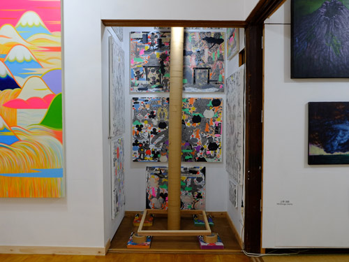 「精神の風景 ・○▲□」は「仮想の山」の麓に立ち並ぶ美術群である。それはリアルな風景を人間の精神に取り込む鍵であり、様々な思考が絵画を中心軸にインスタレーションとして屹立する。