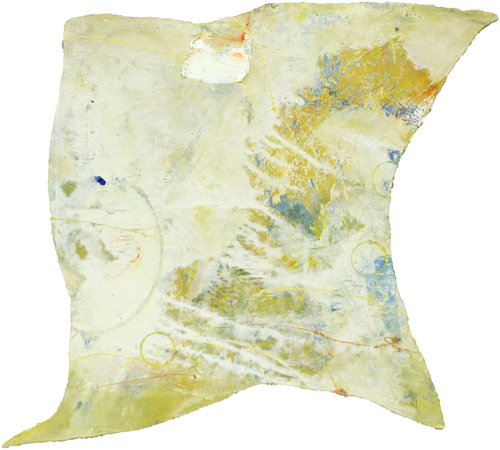 今年に入ってから、ドローイングを元にした不定形のキャンバスを使って制作をはじめました。星のようにも鳥のようにも見える形。池や石、突然世界に空いた穴のようにも見える形。作品が見た人の生きる世界と繋がって、色々な姿になる。
