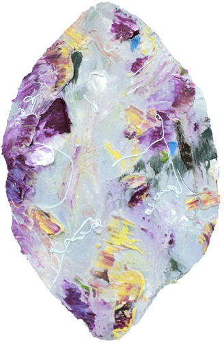 よく廃棄されたモノや身の回りから出たカスを素材として取入れ、生きることの切なさと美しさを作品を通して表現している。捨てられたものと拾われたもの、価値のあるものとないもの、虚構と真実の境界線に触れてみる。 絵を描くことで自分と世界との距離を測り、価値の捉え方を模索しながら、納得できる生き方を探し続けていく。
