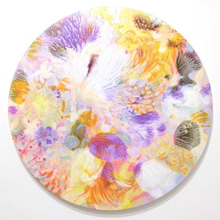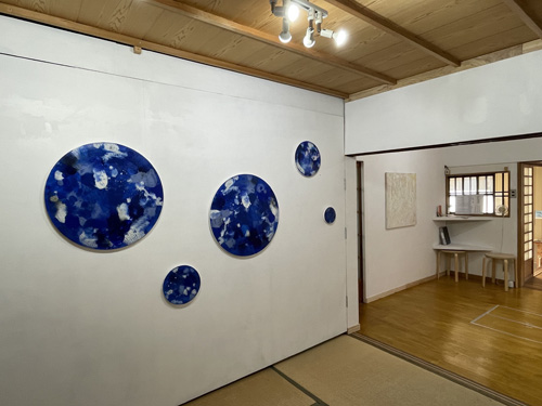 本展は、デカルコマニー(転写)の技法を取り入れた作品や、円形のキャンバスを用いた作品など、近年の国内未発表作を中心に、抽象絵画の可能性を追究しながら変化を続ける寺島の制作の現在地点を指し示す展示となります。
