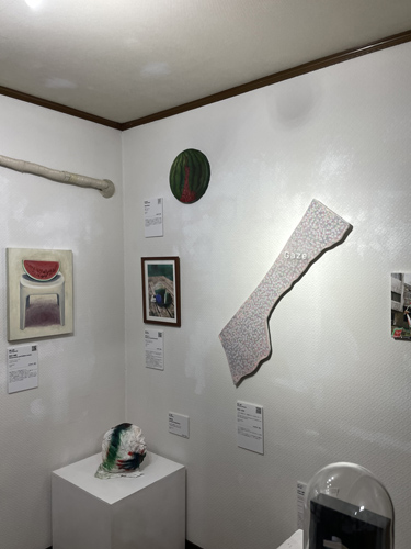 「スイカ美術展」は、タイトルの示すとおり、果物のスイカをモチーフとした作品、もしくはスイカのカラー(緑、赤、白、黒)を用いて表現された作品による公募展です。アンデパンダン形式で開催される展覧会なので、審査等はなく、応募作品は原則としてすべて展示されます。絵画、ドローイング、イラスト、グラフィックデザイン、写真、版画、彫刻、立体、陶器、映像、インスタレーション、工芸、アクセサリー、詩、文章、音楽やサウンド、あるいはパフォーマンスまで、募集作品の形式にも一切制限を設けていません。また出品に年齢等の条件もなく、すべての人に開かれた展覧会となります。